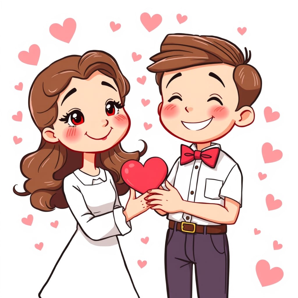 A few hours later the system allowed me to create an image of a boy giving a valentines to a girl and got the image at the bottom of the page.