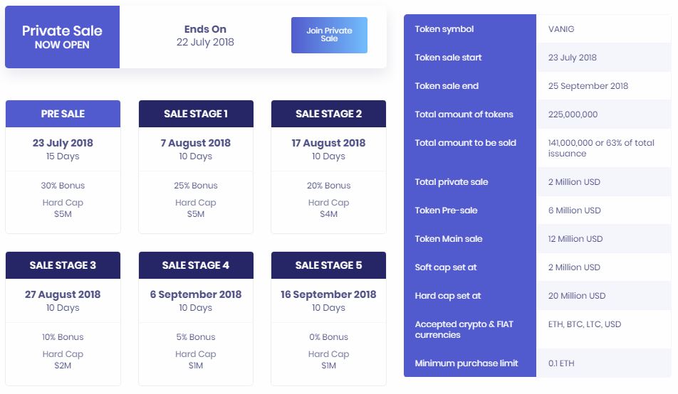 In order to build a platform for e-commerce, vanig will conduct an initial coin offering to start funding the project. The proceeds will be used in project development, marketing campaign, and partnership deals. Vanig token is therefore created and will be used in the marketplace.