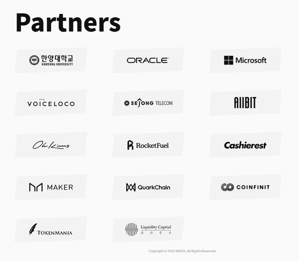 반타 네트워크가 주목받는 이유는 이러한 멋진 아이디어를 가진 프로젝트라는 이유 이외에 파트사들과의 협업에 있습니다. 반타는 오라클, 마이크로소프트, 올빗, 캐셔레스트, Maker, 한양대학교 등과 같은 공룡 기업들이나 거래소들과 이미 파트너쉽관계에 있습니다. 엄청나죠?. ㅋㅋ