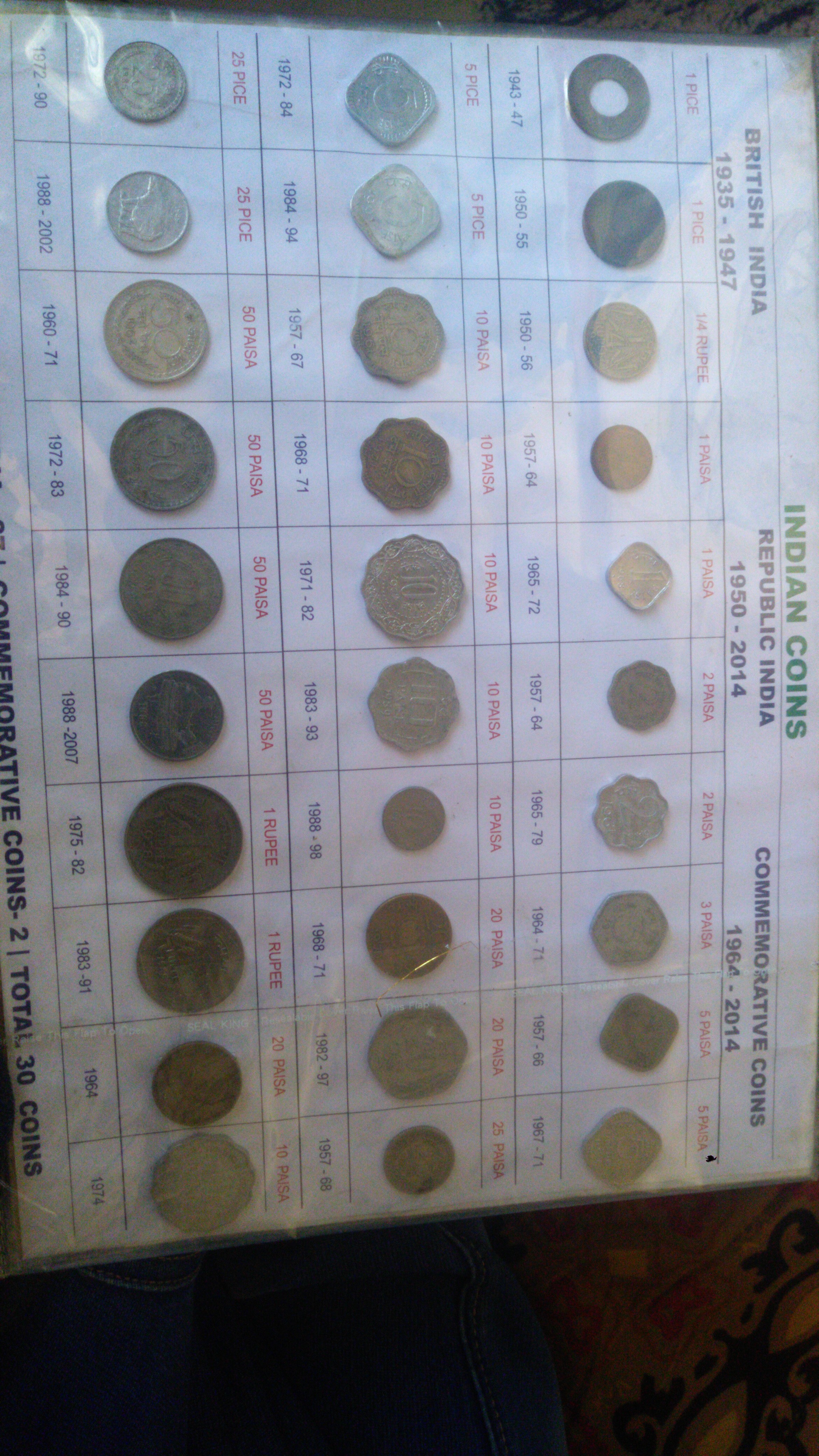 Friends i have collected coin from 1945 to 2014 .(BRITISH INDIA COIN , REPUBLIC INDIA COIN , COMMEMORATIVE COINS ) .its not easily to collecting the coin.