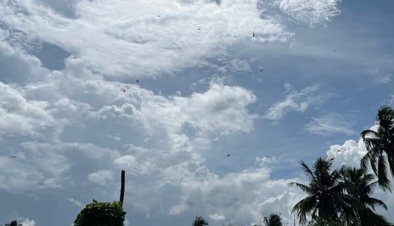 I woke up very late that day and got up and went out a bit. Then I looked at the sky and was surprised. And the boys and girls of Akash village are flying kites. The sky at that time looks very beautiful. Then I took out my mobile phone camera from my room and captured these beautiful scenes.