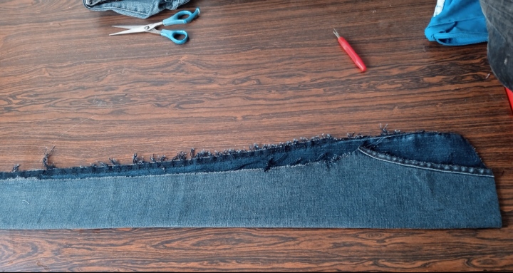 Lo primero que hice fue buscar un retazo de tela muy parecido al original para ampliar el tamaño de nuestra prenda y le di el largo apropiado. Ya que la ampliación la haría por el costado de mi pantalón.