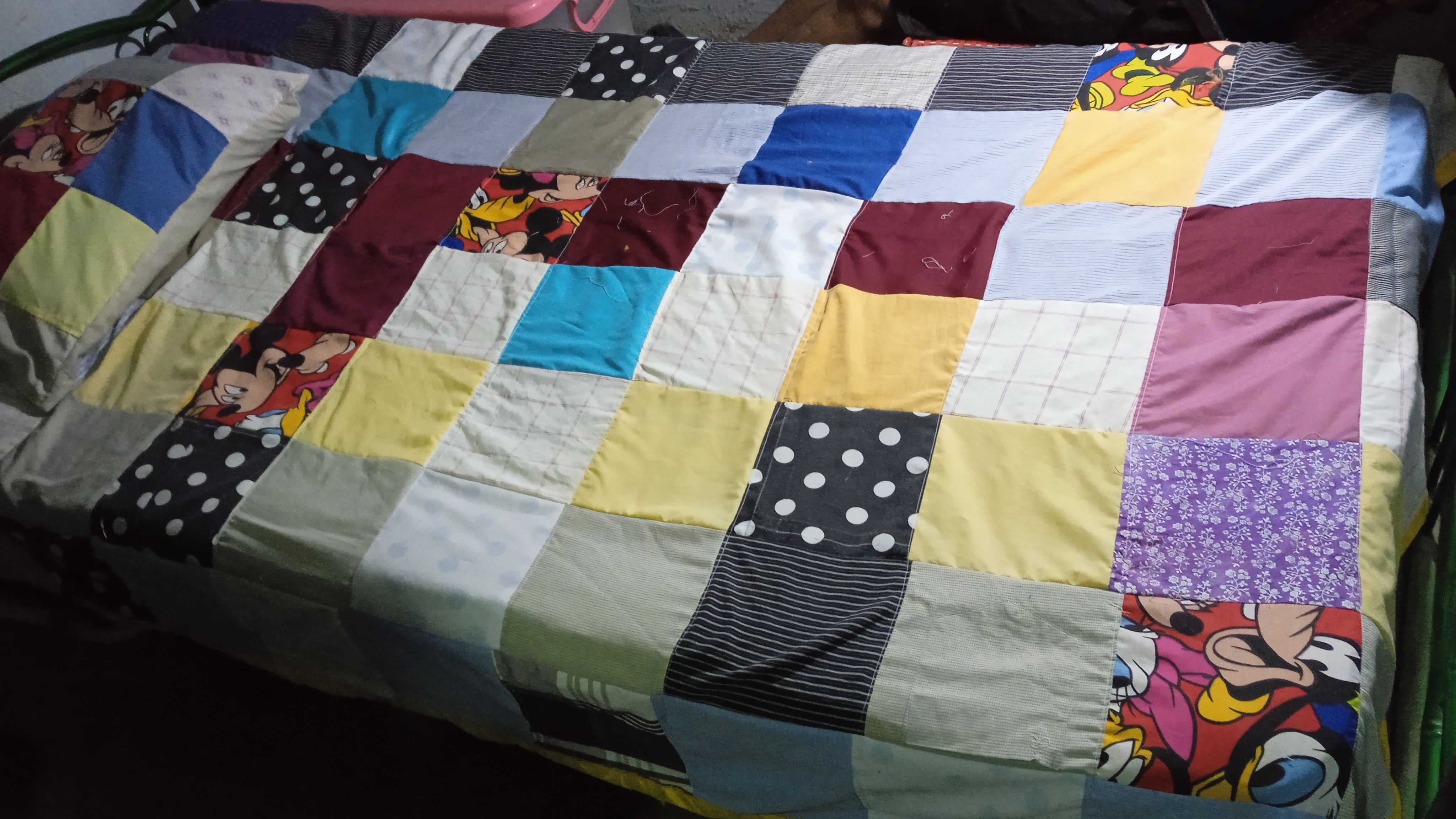 Así quedó nuestra colcha multiusos de retazos, hecho con materiales reciclados.