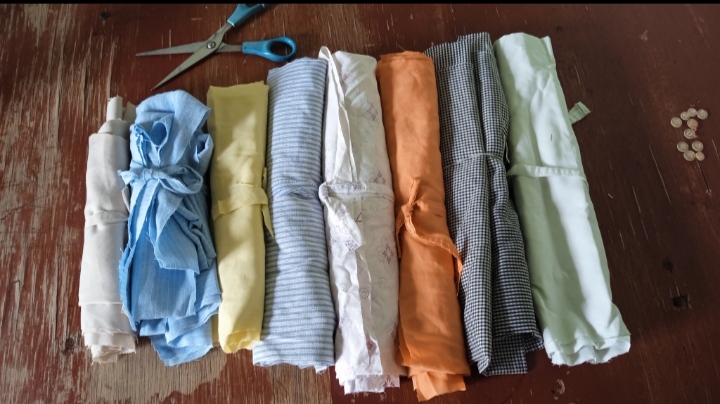 Paso 1: seleccioné los retazos de telas. Usé camisas de vestir de algodón sin uso, y restos de cortes de trabajos costuras anteriores. Luego los planche para trabajar mejor la etapa de corte.