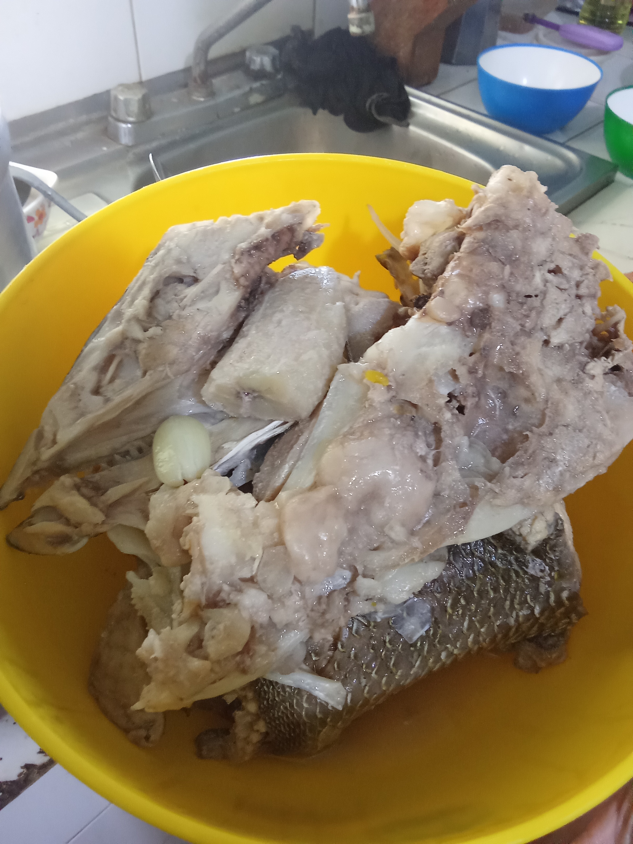 Un detalle particular qué tenemos aquí en casa es de una vez estar lista la Sopa se espera unos minutos y se retira todo el Pescado en la misma para que quedé este mucho más firme al momento de servir y qué no esté esparcido por toda la olla qué contiene la Sopa.
