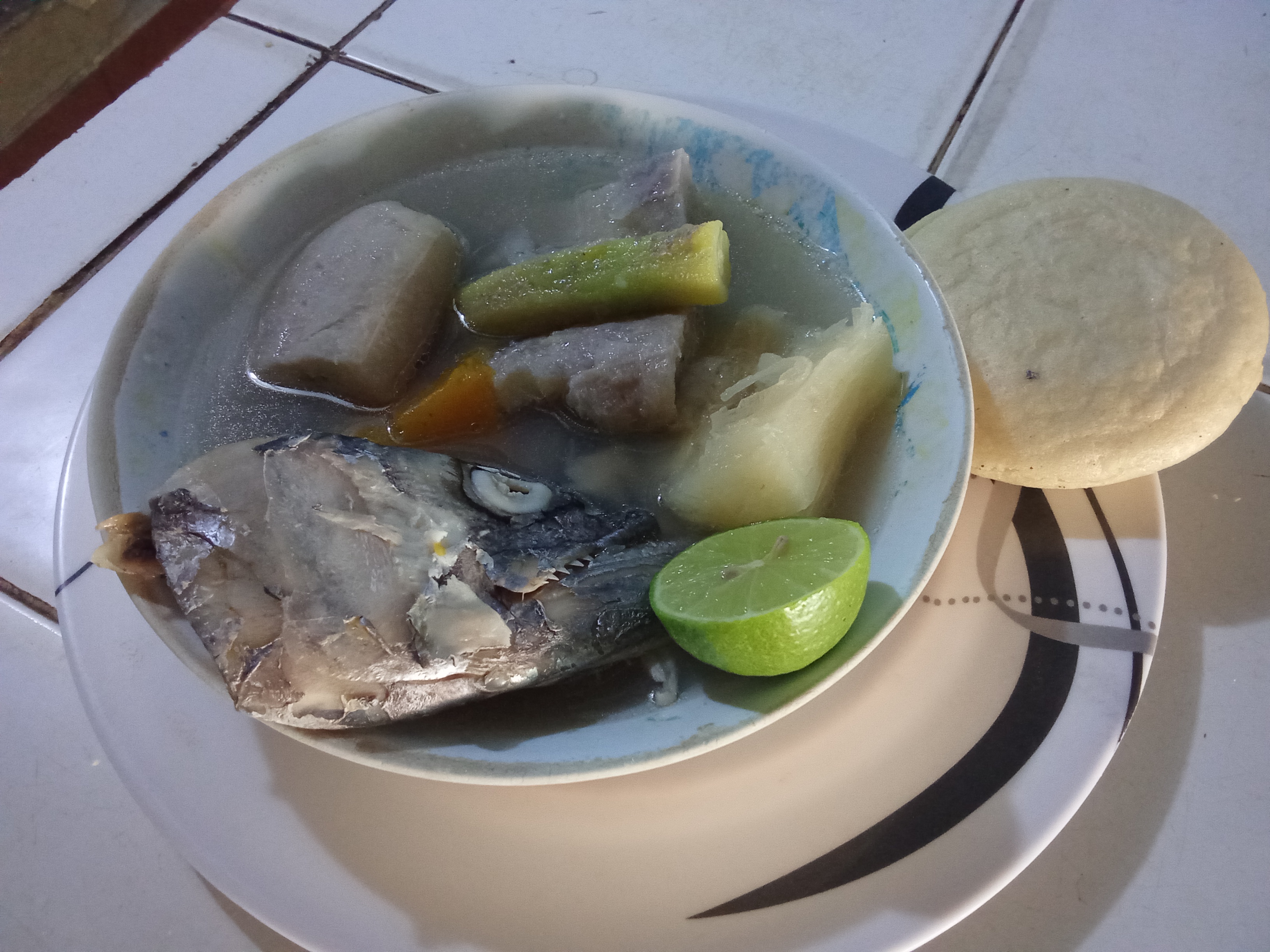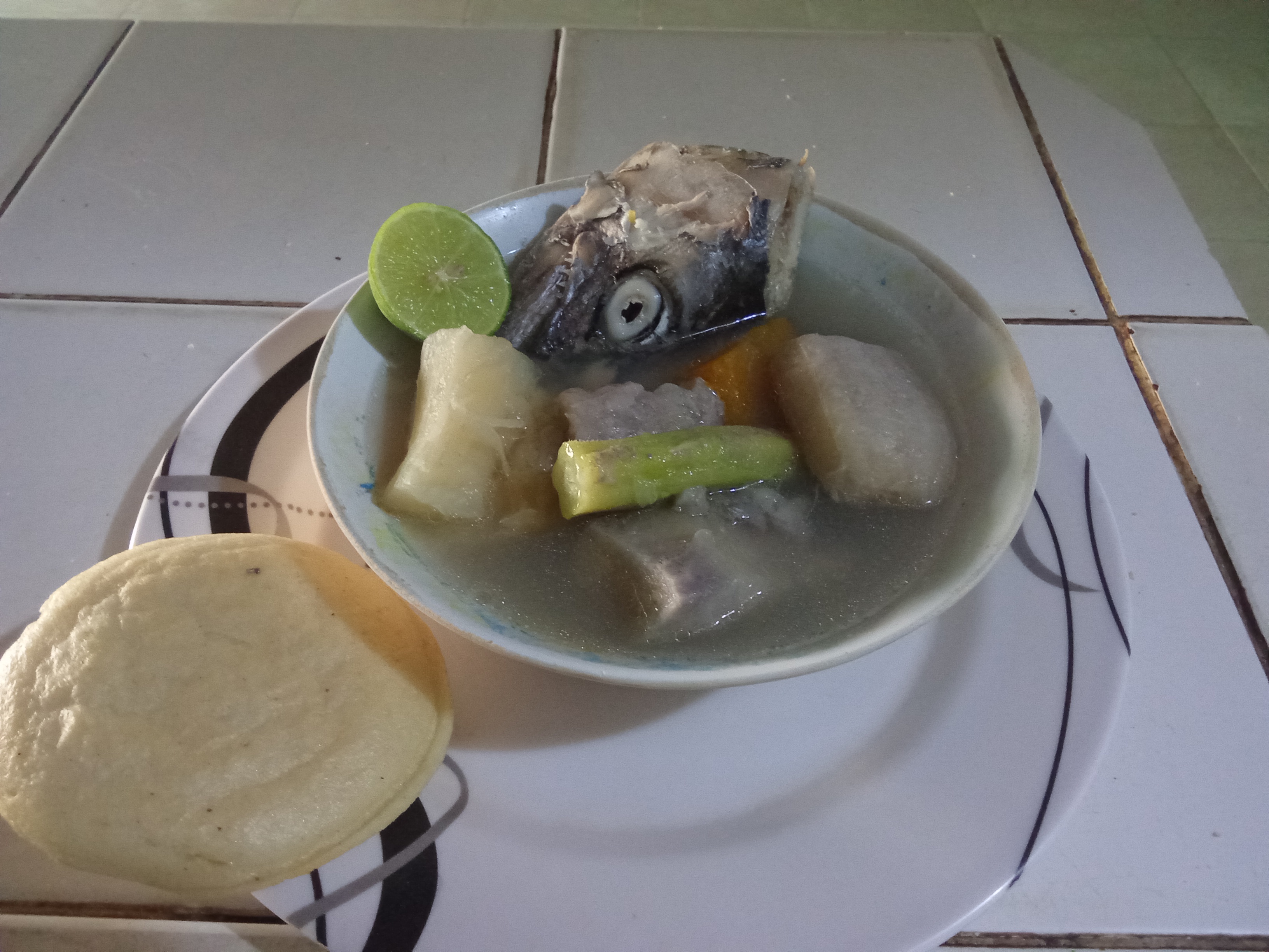 Ya cuando se sirve finalmente se completa la comida con una arepa así cómo también con medio limón pero eso va a depender de cada uno de nosotros por lo menos a mí personalmente me gusta con bastante (limón) ya que creo ayuda a potenciar los sabores del resto de ingredientes de la Sopa.