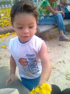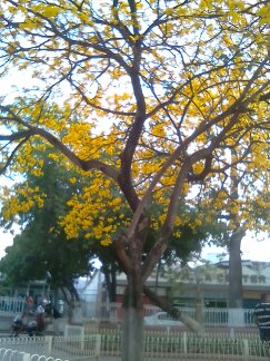 Me encanta su color imponente amarillo.En la mayoría de las escuelas se persive su presencia; al llegar su temporada los suelos se contagian de su alegría; mi hijo se la pasa de maravilla recogiendo sus flores. Espero les guste.