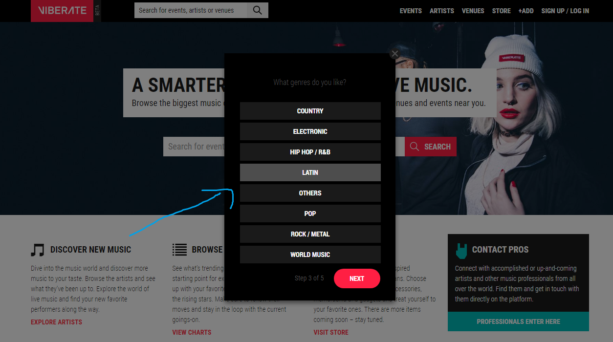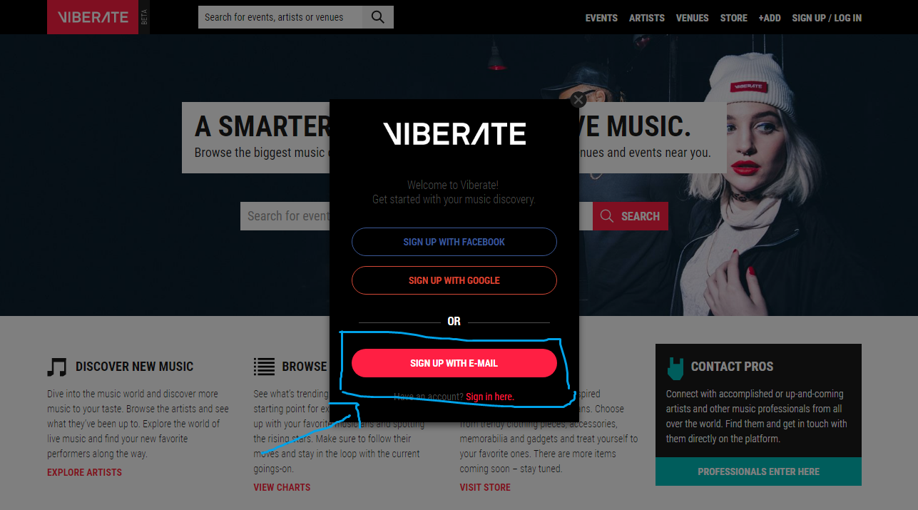 Le damos en Sign up seleccion profesional de la musica o fans de la musica