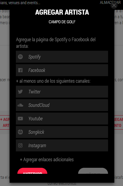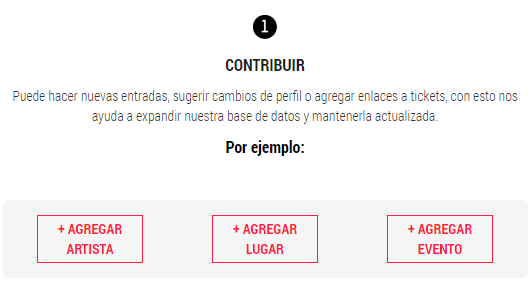 Acá puedes agregar artista, lugar o evento que no esté ya registrado en la pagina
