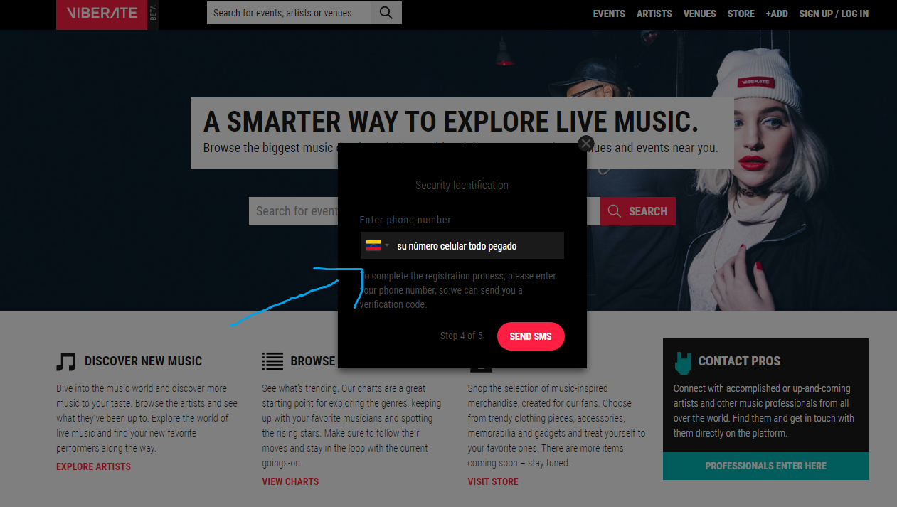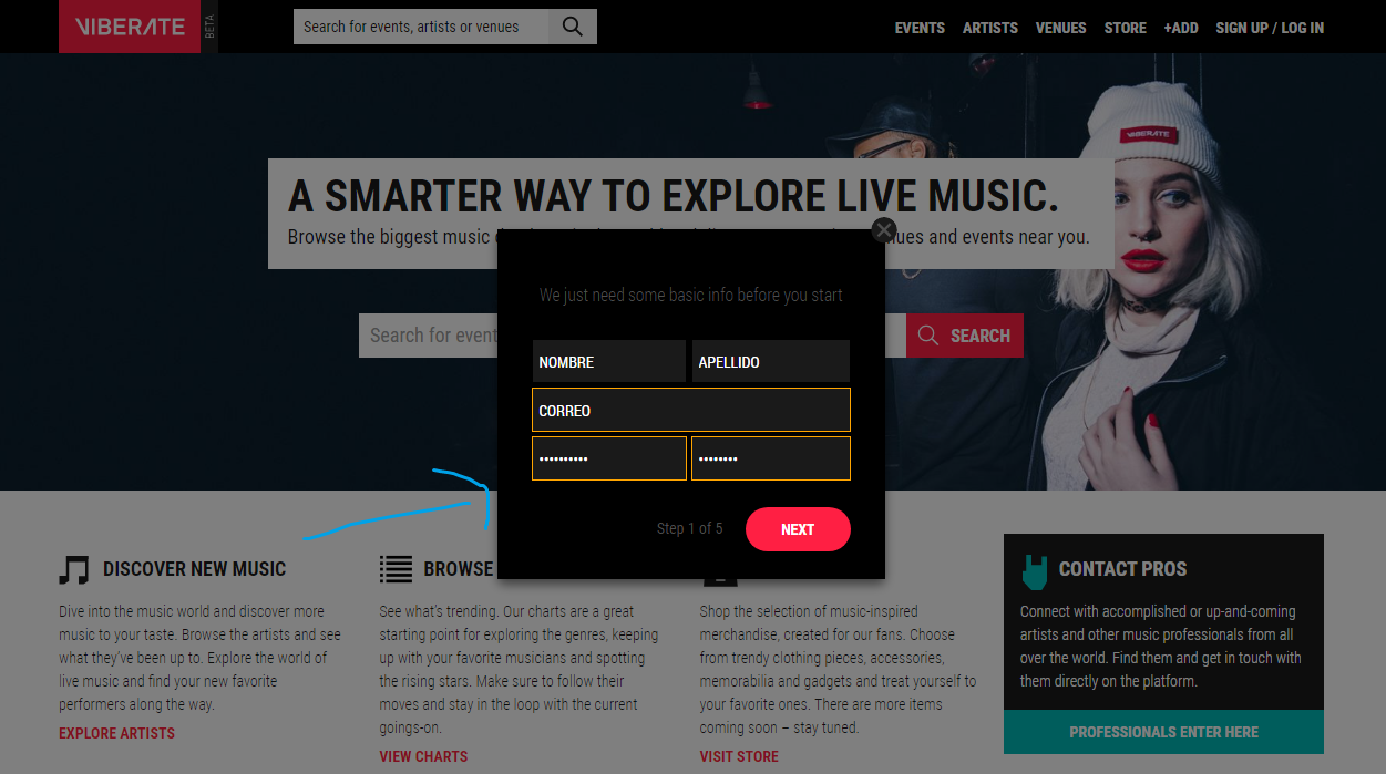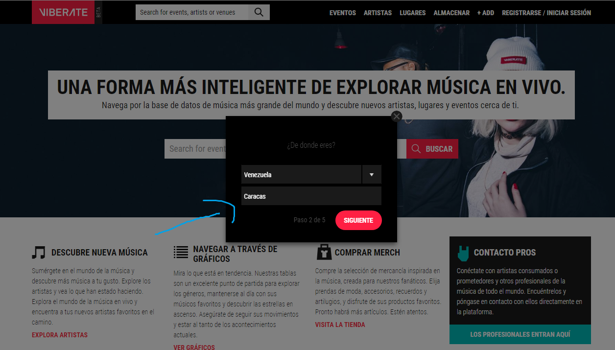 En caso contrario el proceso de registro de fans de la musica es el siguiente, de resto el proceso de registro es totalmente el mismo