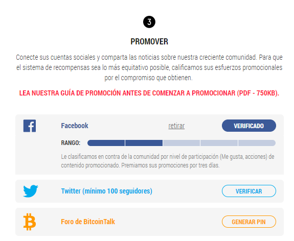 Acá tienes que verificar tus redes Facebook (tenes mas de 50 amigos) y twitter (tener más de 100 followers)