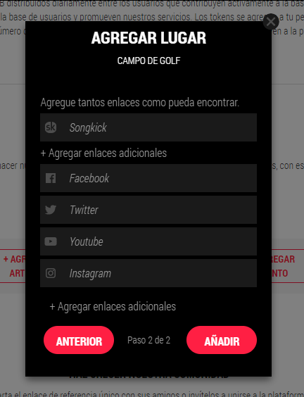 Luego colocar sus redes sociales,LUGAR,acá puedes agregar lugares como sitios de conciertos, bares, discotecas, etc.