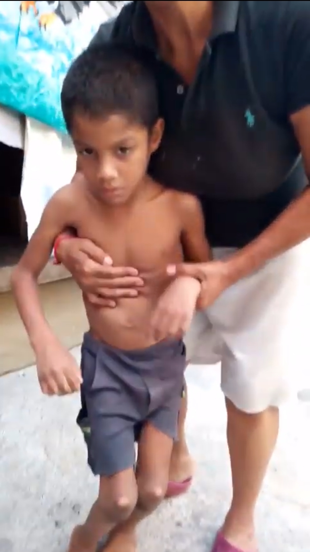 Este infante risueño vive con su familia la cual es de muy escazos recursos, ellos no tenian como costearle una silla de ruedas a Cristian, por lo que el vivia arrastrándose en el piso de su casa, donde solo tenia una alfombra vieja y desgastada para poderse mobilizar, por eso las cayocidades de sus rodillitas.