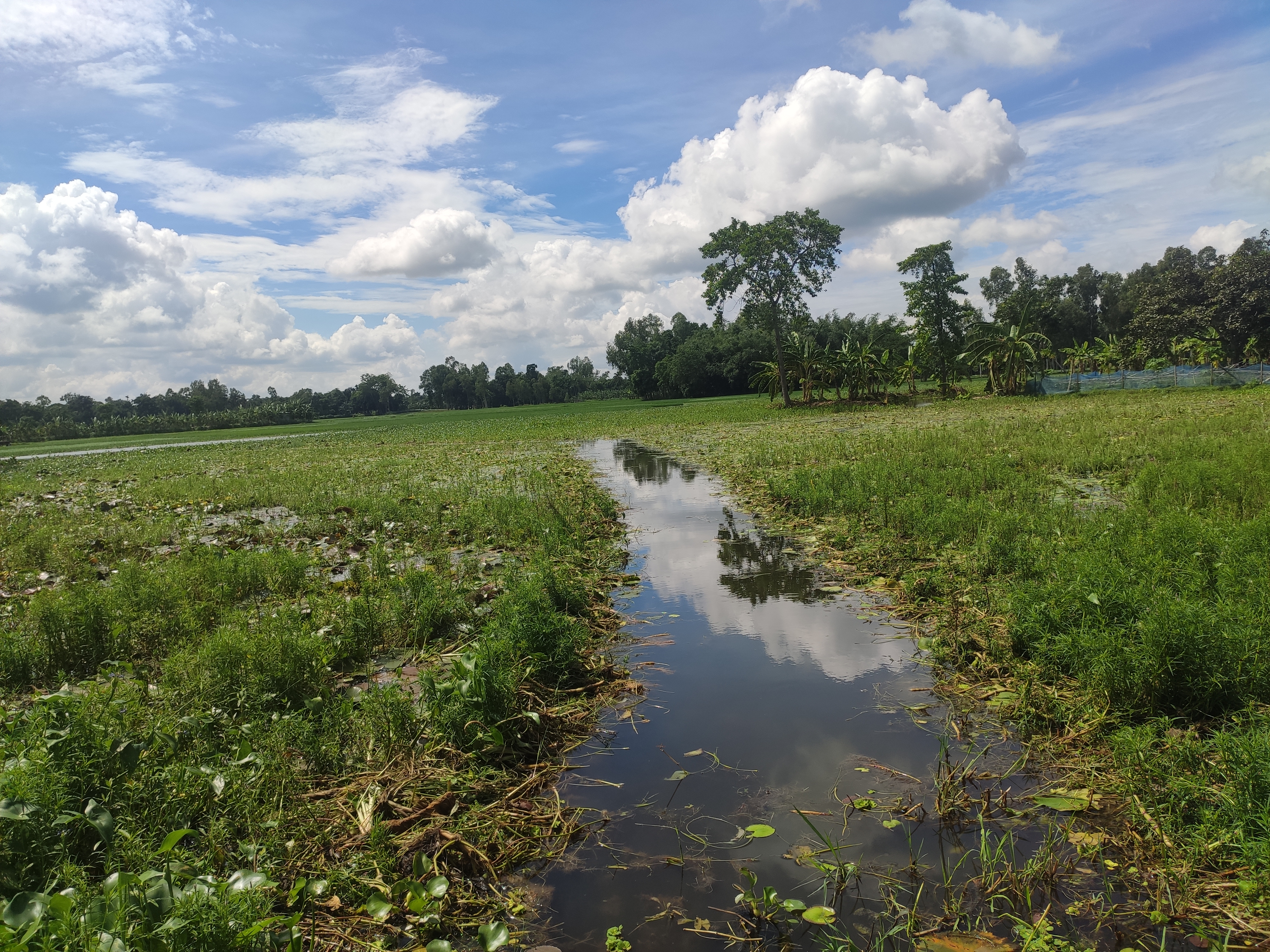 শুরুতে এই স্থান টি আমার মনে জায়গা করে নিয়েছিলো।এটি একটি ছোট ধানের জমি ছিলো। যেখানে জল জমে চারপাশে জঙ্গল হয়ে গেছে, এই জয়গার সবচেয়ে সুন্দর অংশটি হলো জলের উপর আকাশের প্রতিচ্ছবি। এটি দেখে মনে হচ্ছে দুপাশের ঘাসের মাঝে কেউ আয়না রেখেছে।