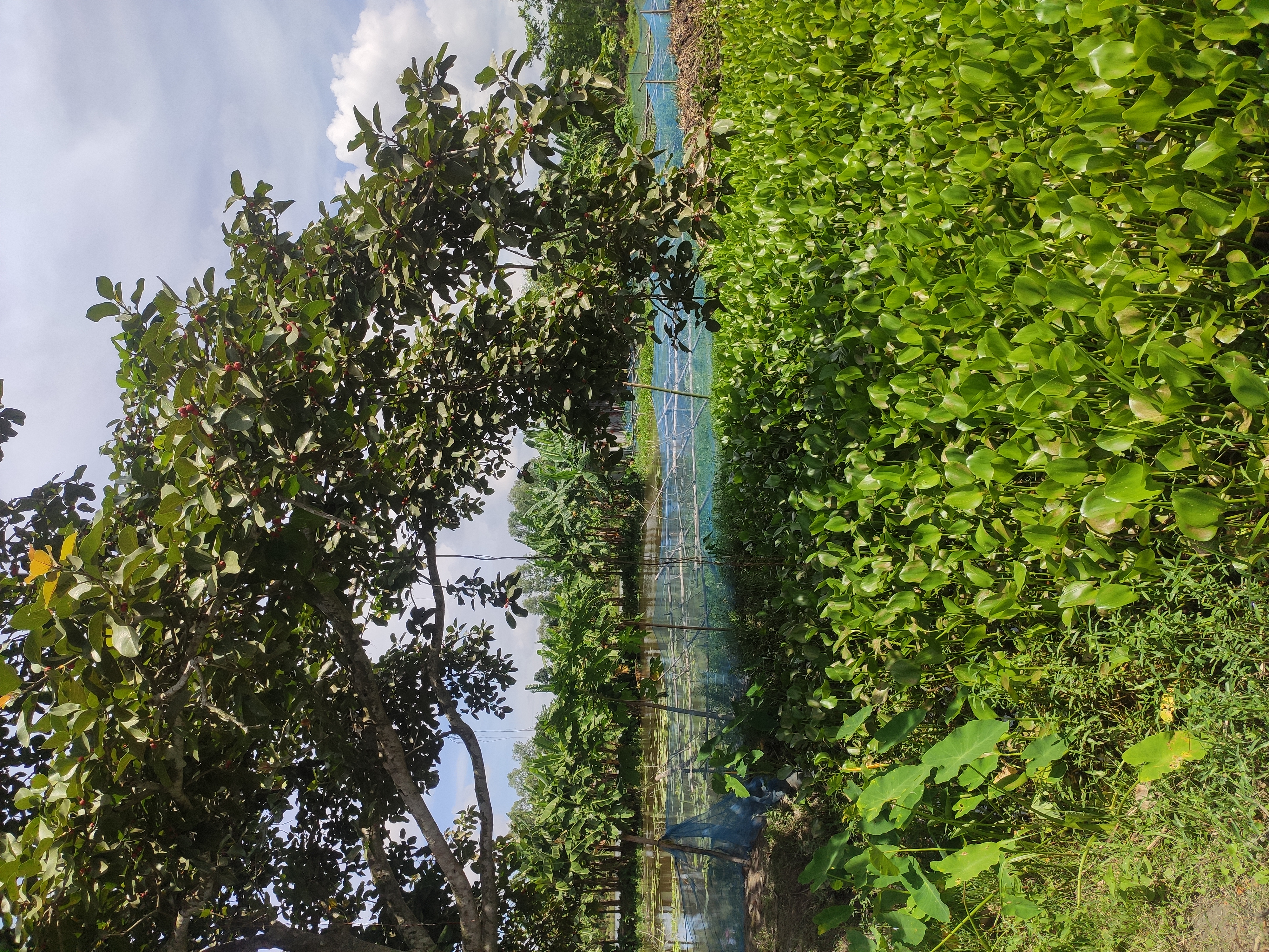 এই গাছটি কে যতদুর সম্ভব বট গাছ বলে। এই গাছের ঘন সবুজ এর মধ্যে ছোট ছোট লাল রং এর ফল ধরে ছিলো। যা দেখতে অনেক সুন্দর ছিলো।আর কৃষকরা ক্ষেতের কাজ করে এসে এই গাছের নিচে বসে বিশ্রাম নিচ্ছিলো।আবার কেউ খাবার খাচ্ছিলো।
