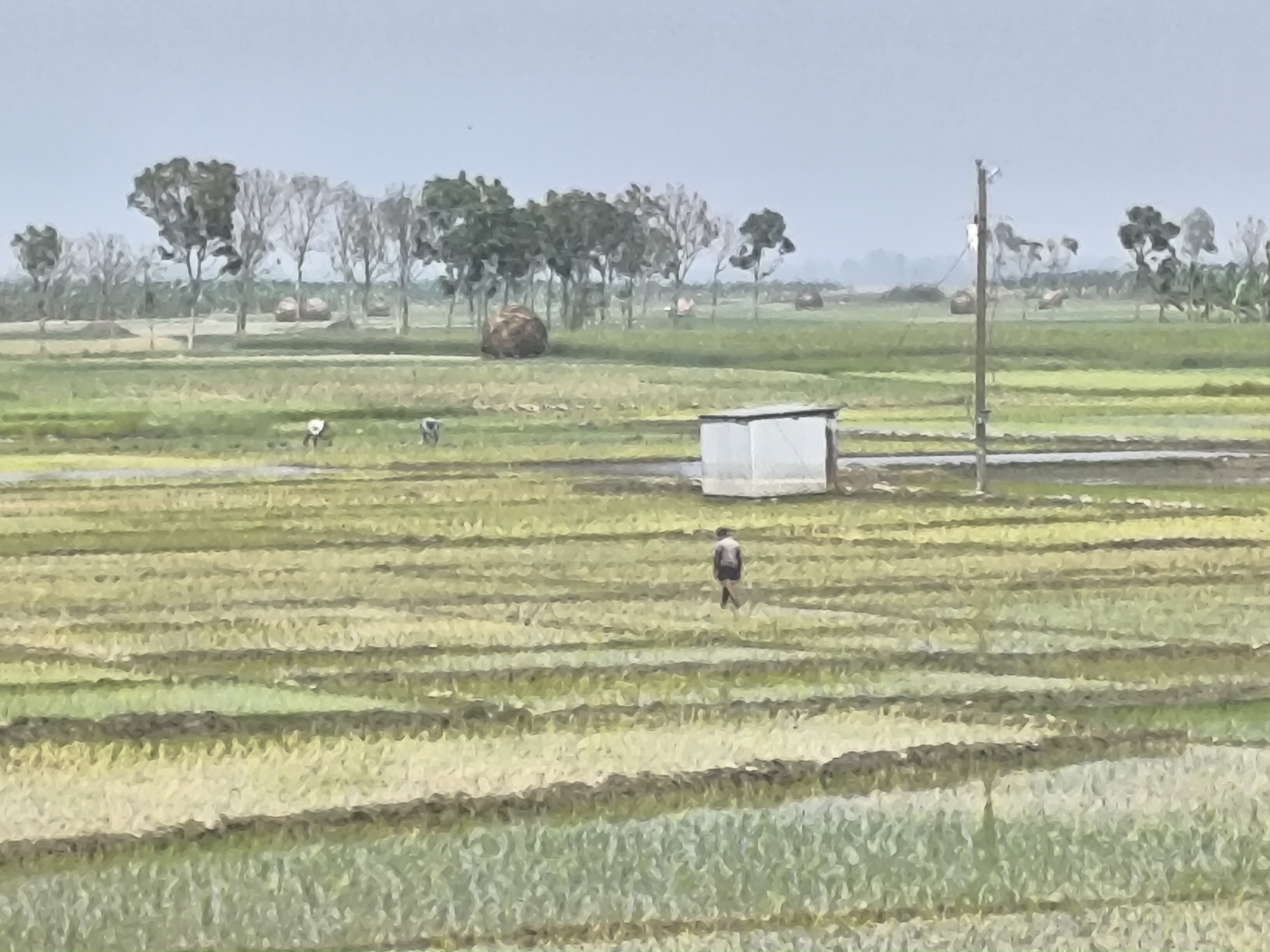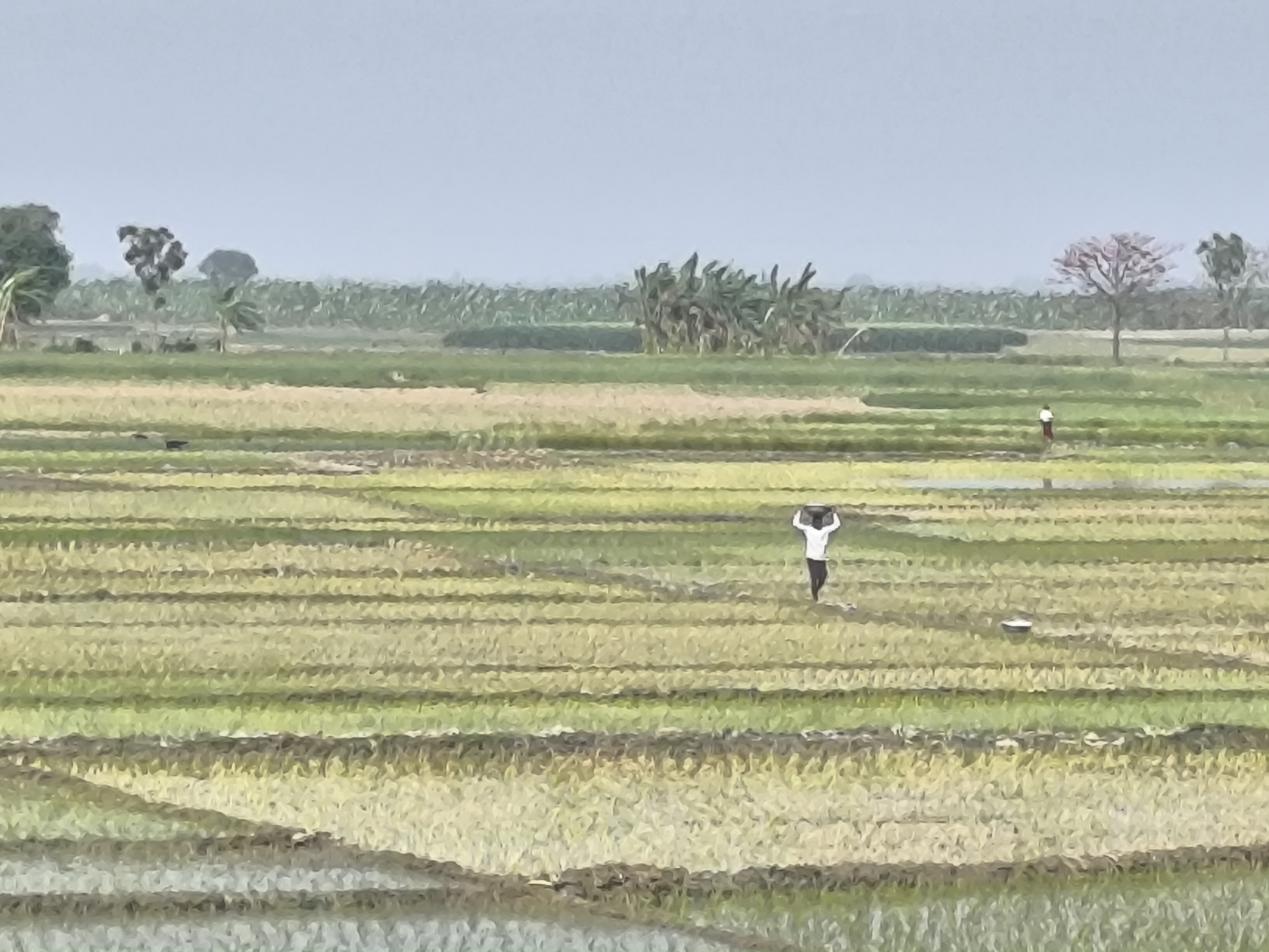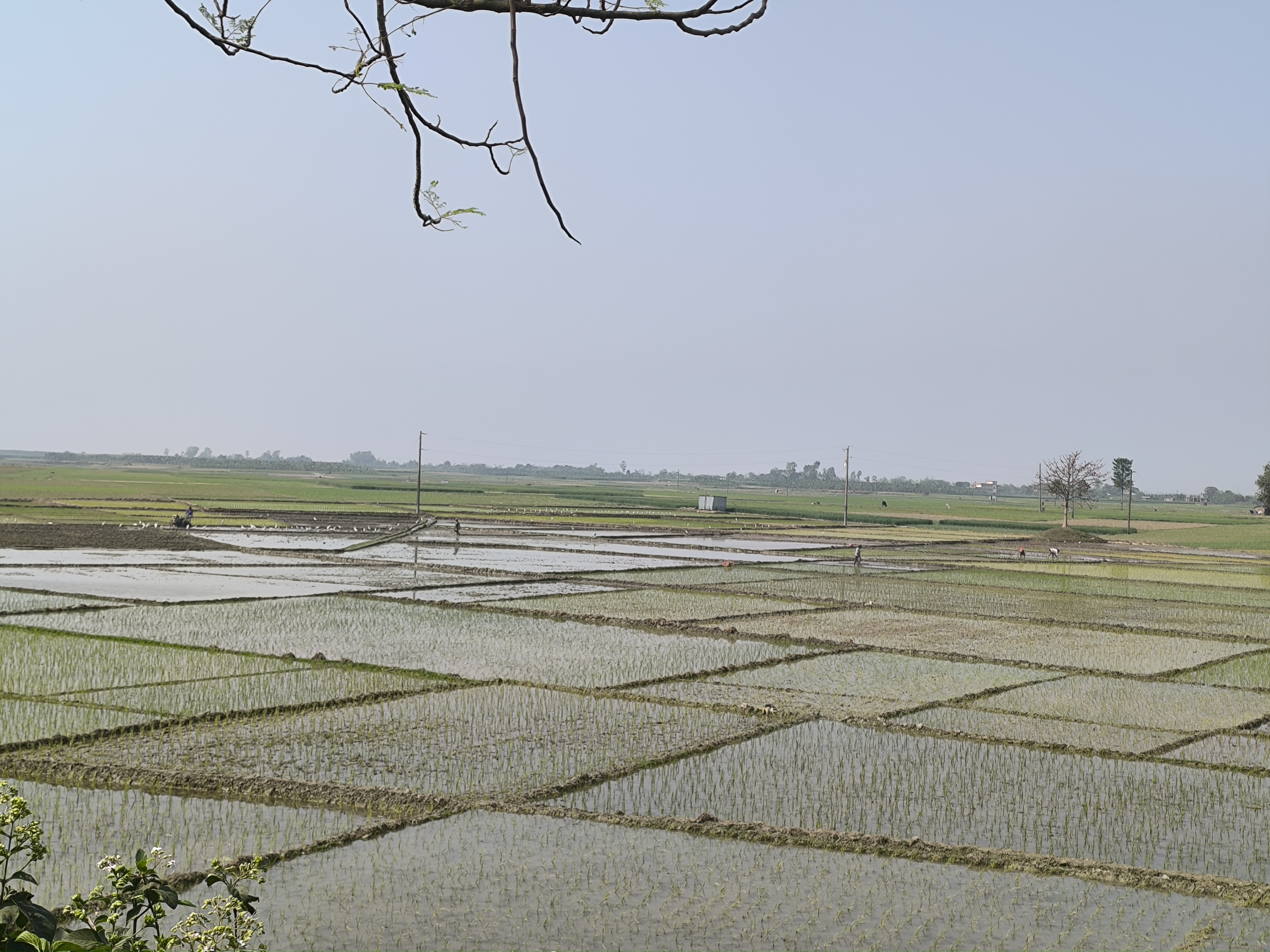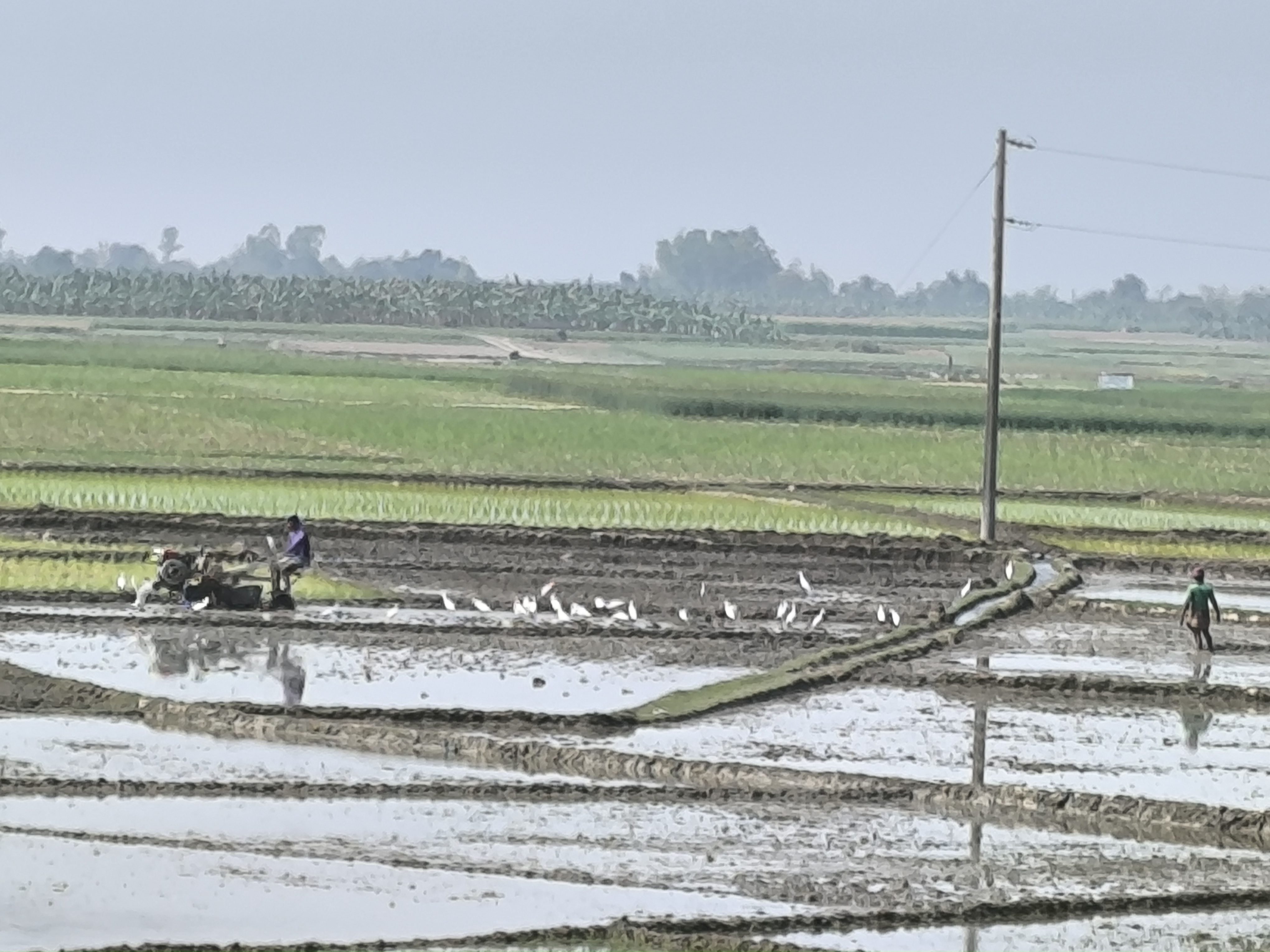 বিভিন্ন টাইপের কাজকর্মের দেখা মেলে। কোন জমি এখনো চাষ দেওয়া হয়নি, কোনোটায় আবার ধান রোপন চলছে , কোন জমিতে আবার পানি দেওয়ার কার্যক্রম চলমান। তবে খুব একটা পার্থক্য থাকে না। সর্বোচ্চ দুই এক দিনের ব্যবধানে পুরো মাঠে কাজের গতি সমান হয়ে আসে।