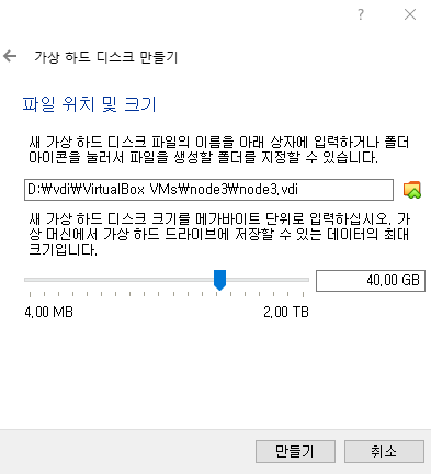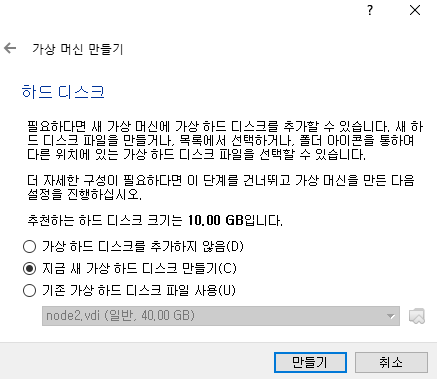 - 하드디스크 설정 ( 모든 설정 완료 후 "만들기" 버튼 클릭)
