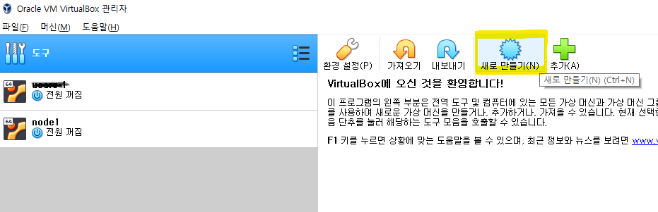 - Virtual Box 실행 및 새로만들기(N) 버튼 클릭