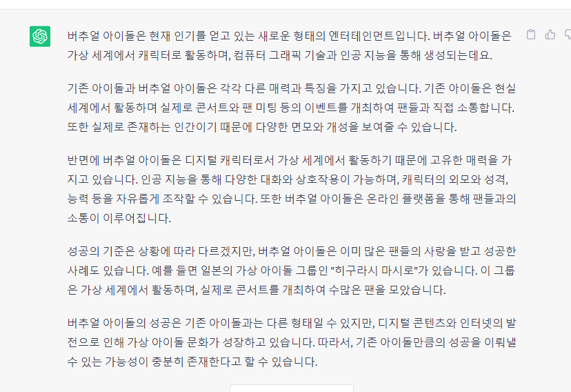 버추얼 아이돌의 성공 가능성에 대해 챗GPT에게 물어보았습니다