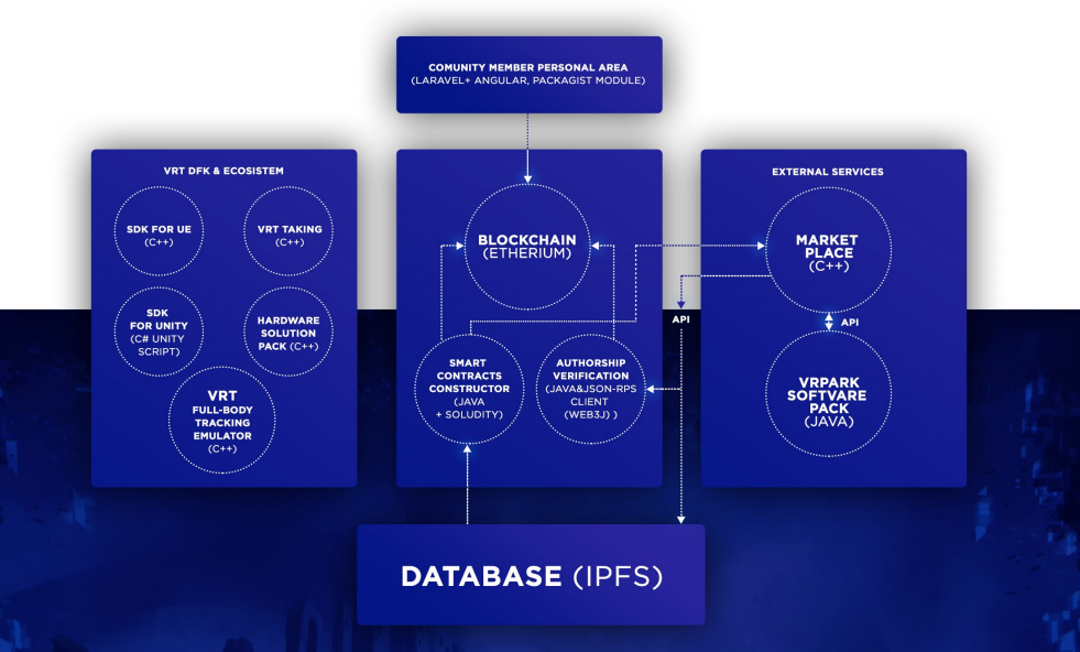 The VRT platform serves for a decentralized VR-Marketplace. The platform will be based on blocking technologies that ensure the distribution of transparent funds and the enforcement of intellectual property rights.