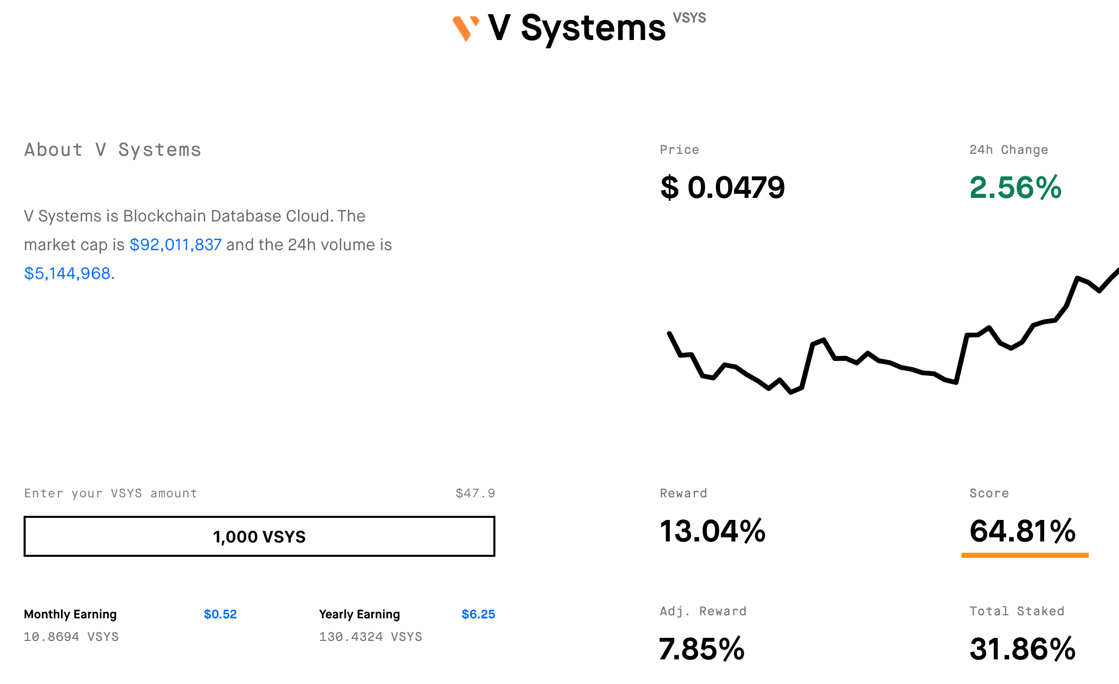 This week, VSYS has gained an overall StakingRewards Score of 64.81% on stakingrewards.com. We promise to maintain a healthy staking environment for all token users. With VSYS coins, you can easily enjoy the rewards from staking with just a few clicks. Take action now!