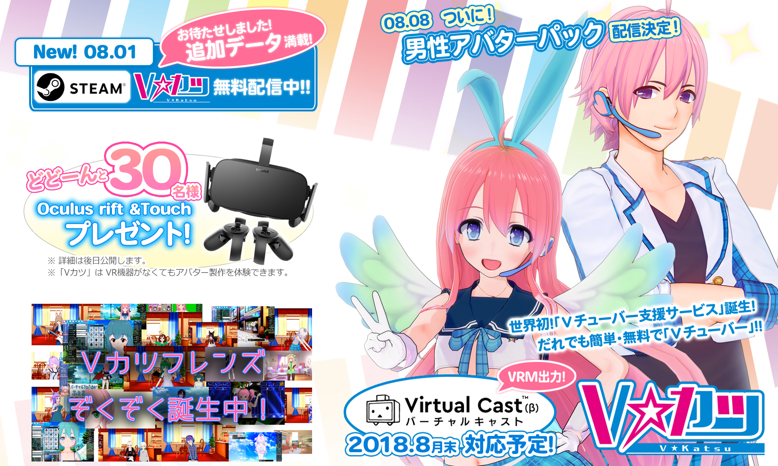 「Vカツ」は3Dキャラクターメイキングからアニメーション、さらには表情付けなどを無料で行える、世界初の「Vチューバー支援サービス」です。