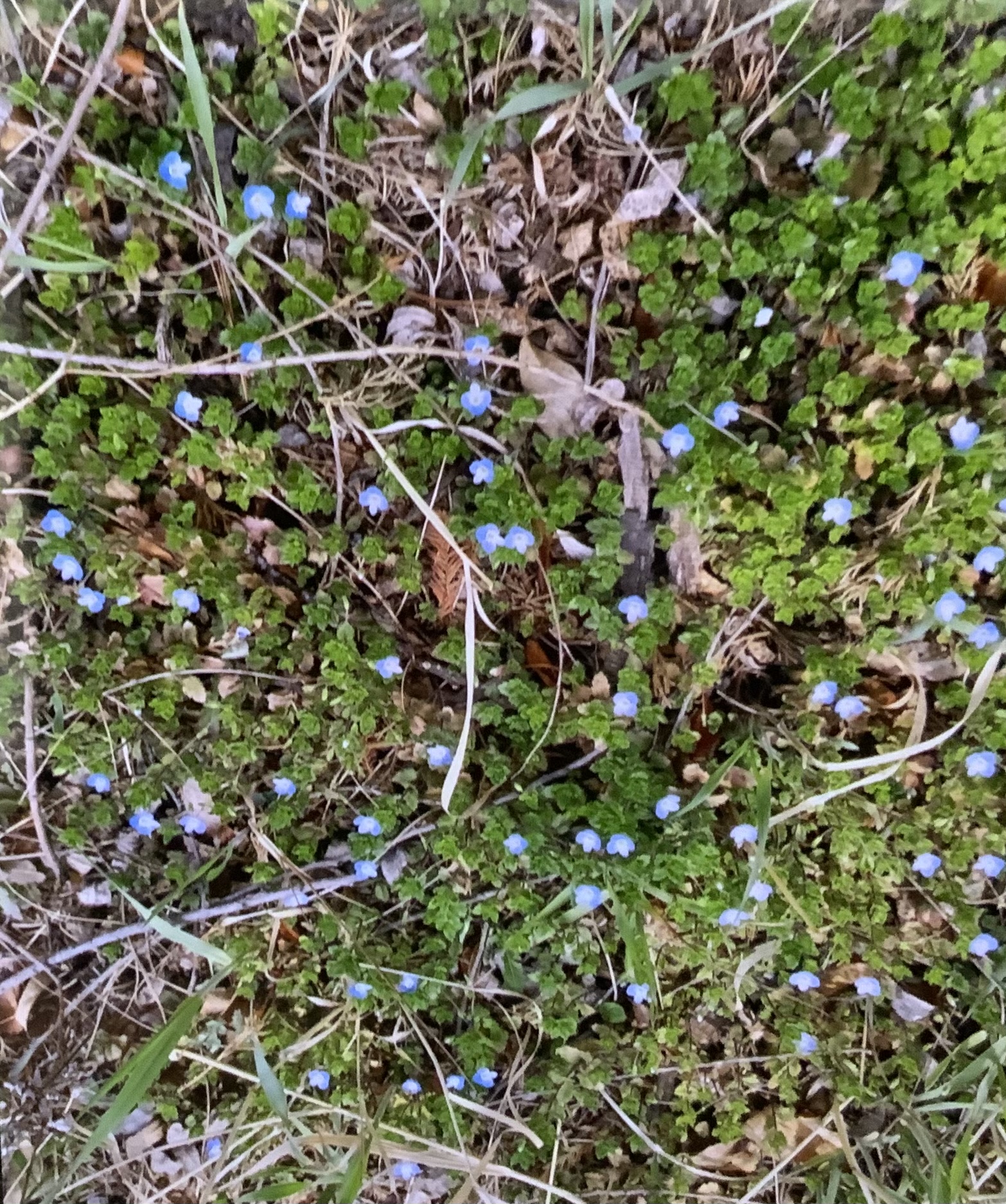 쌀알 만한 크기의 야생화가 덤불을 비집고 나와