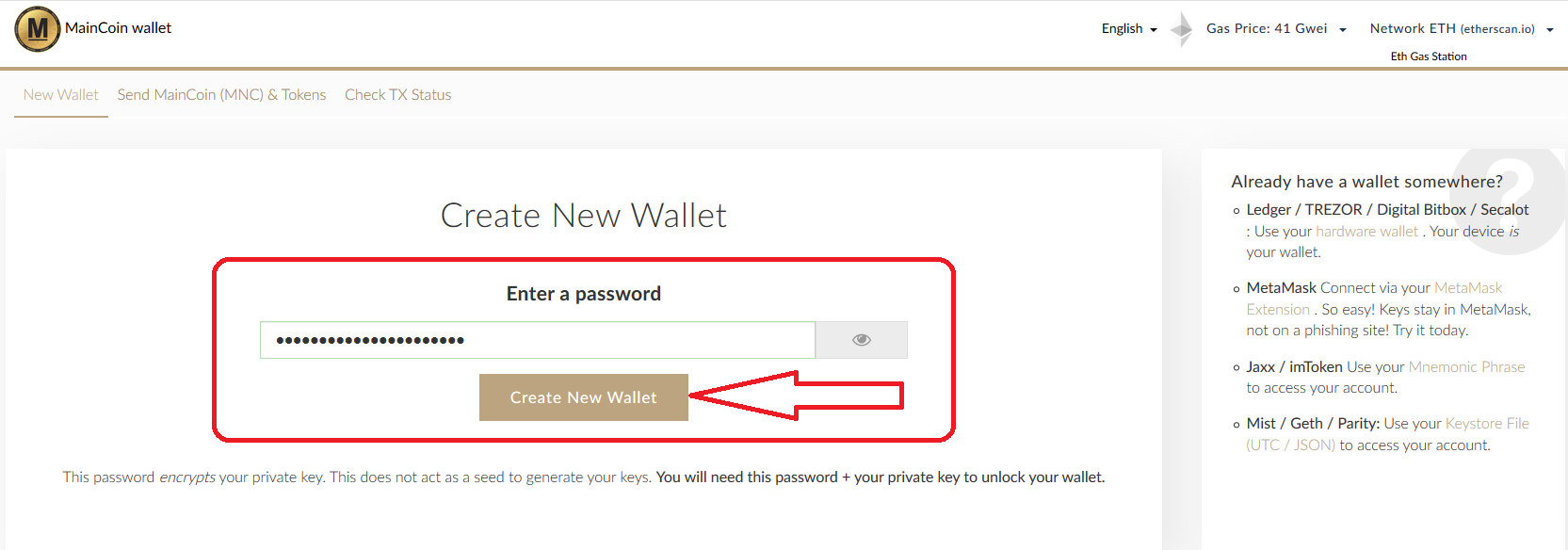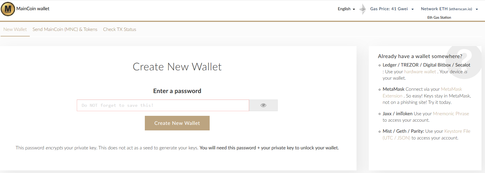 Das Ein- und Auszahlen von Maincoin (MNC) und Ethereum (ETH) wird in einem separaten Beitrag erklärt. Bis dahin einfach schon mal die Wallet erstellen