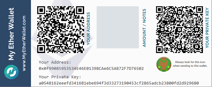 Man kann mit „Print Paper Wallet“ den Privaten Schlüssel ausdrucken und in Papierform an einem Sicheren Ort verwahren.