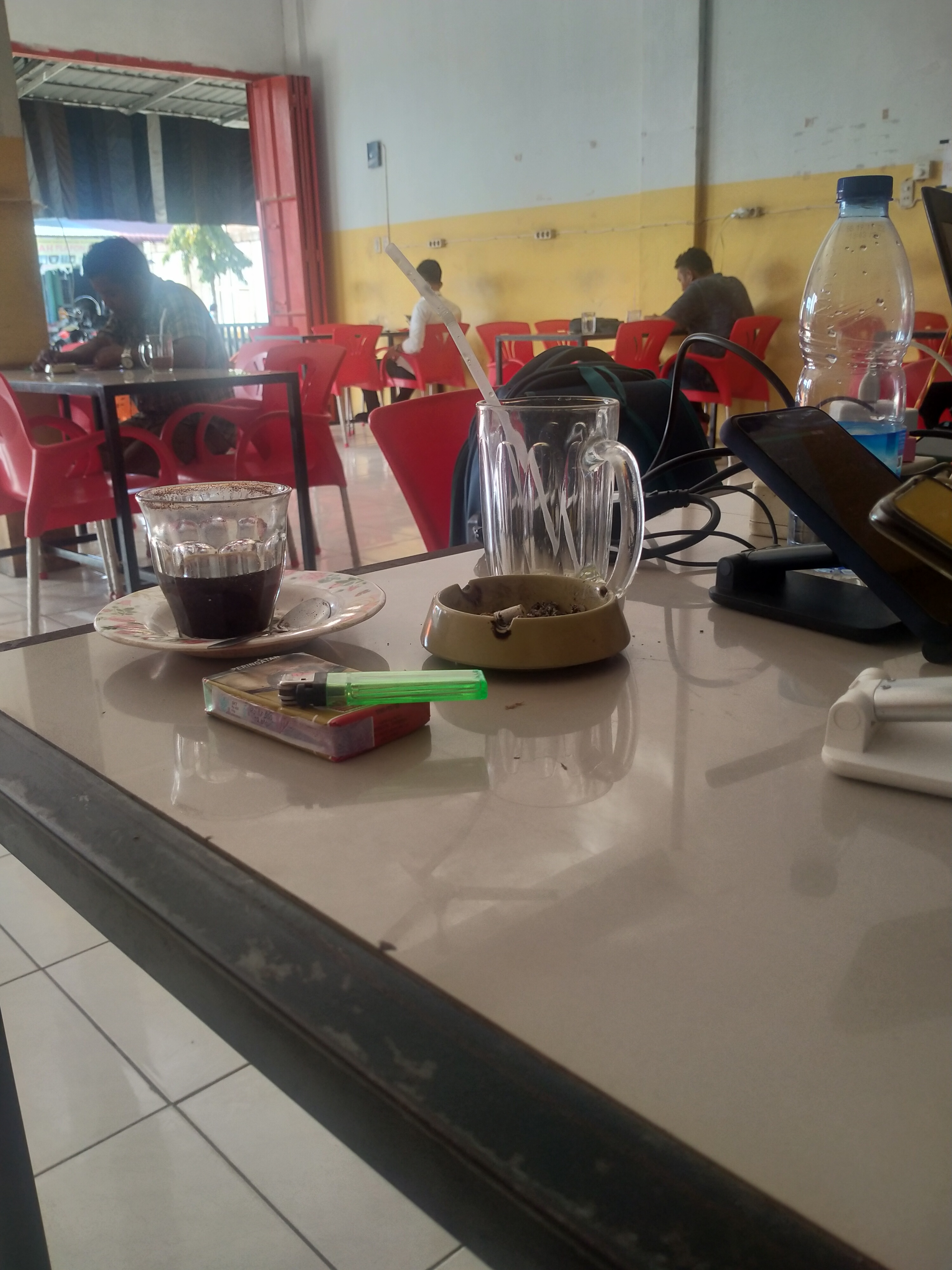 Santai di warung kopi, dengan bekerja.