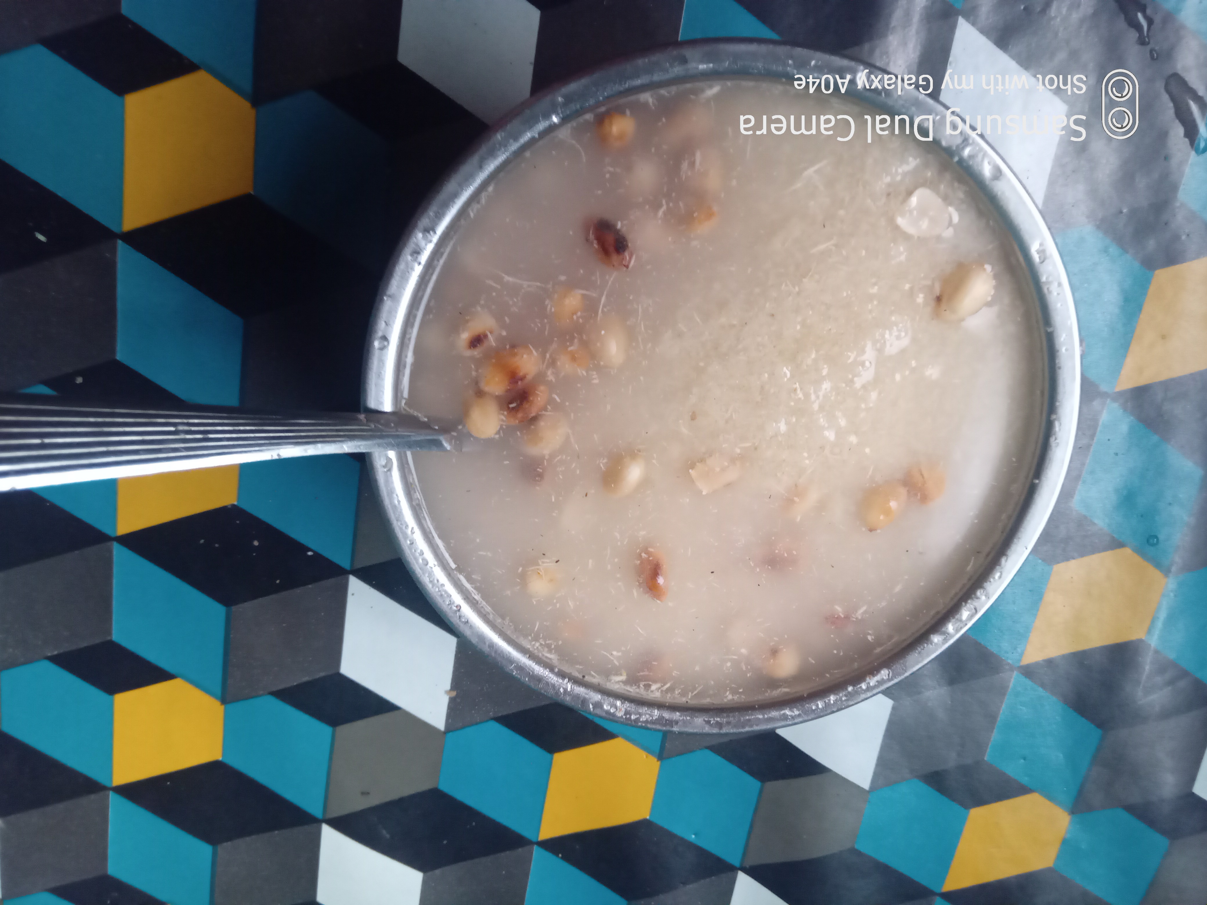 I immediately I got home I meet my Fiance I was so hungry I gave her money to buy foodstuff and prepare a nice soup for us to eat but first I told her to prepare a fast food meal which Garri, sugar and groundnut it's very delicious and apitizing.