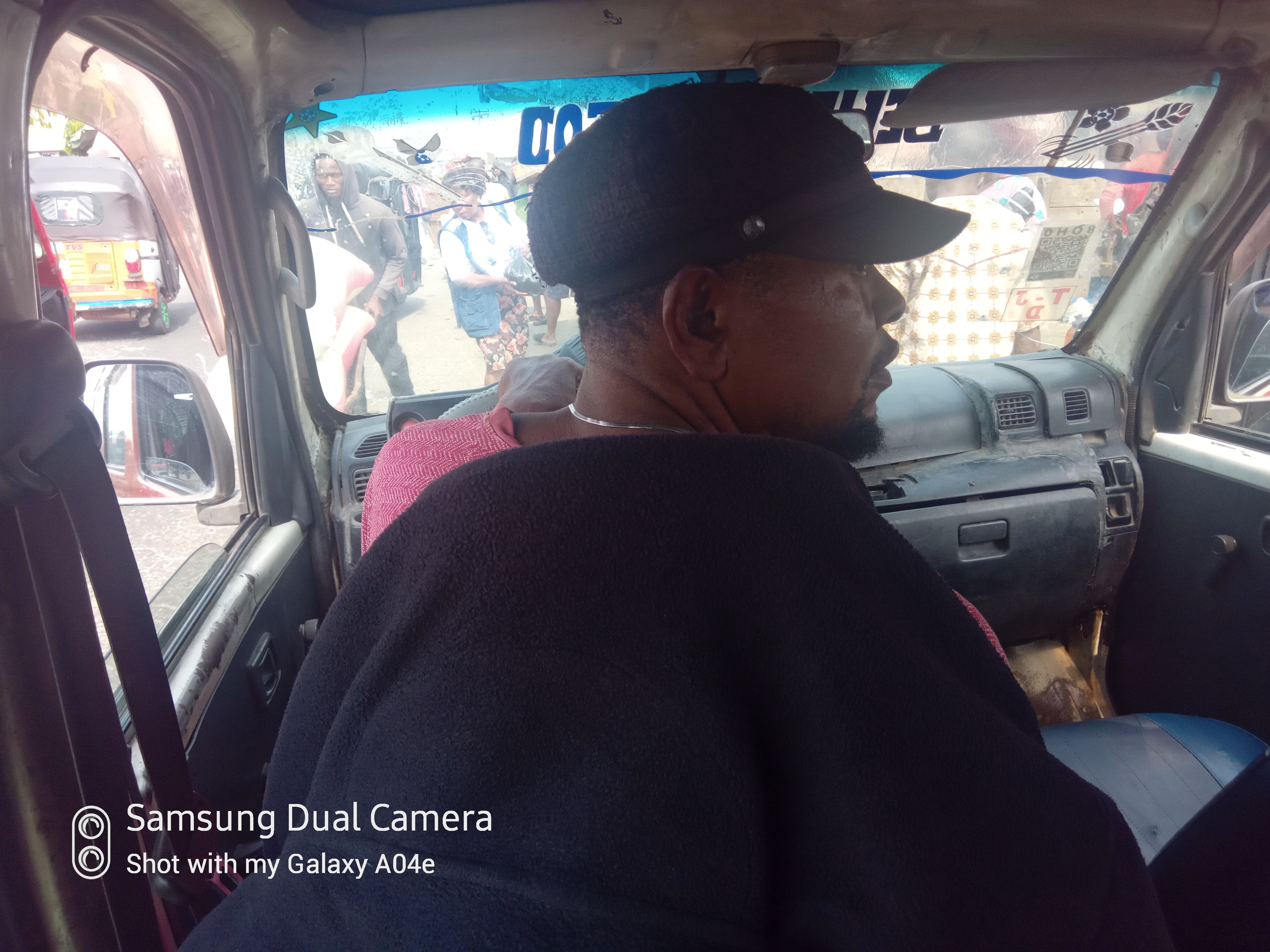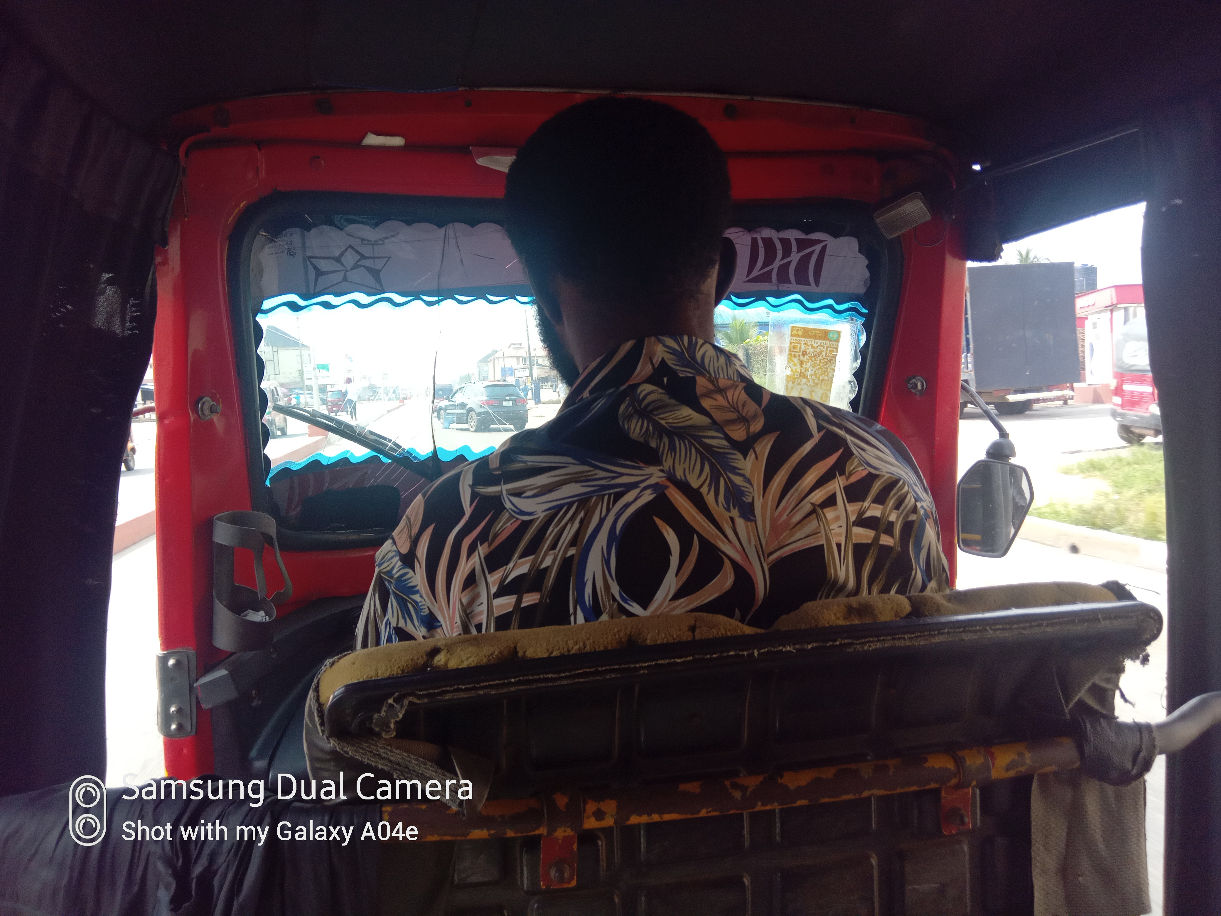 Me inside a tricycle heading to itam market