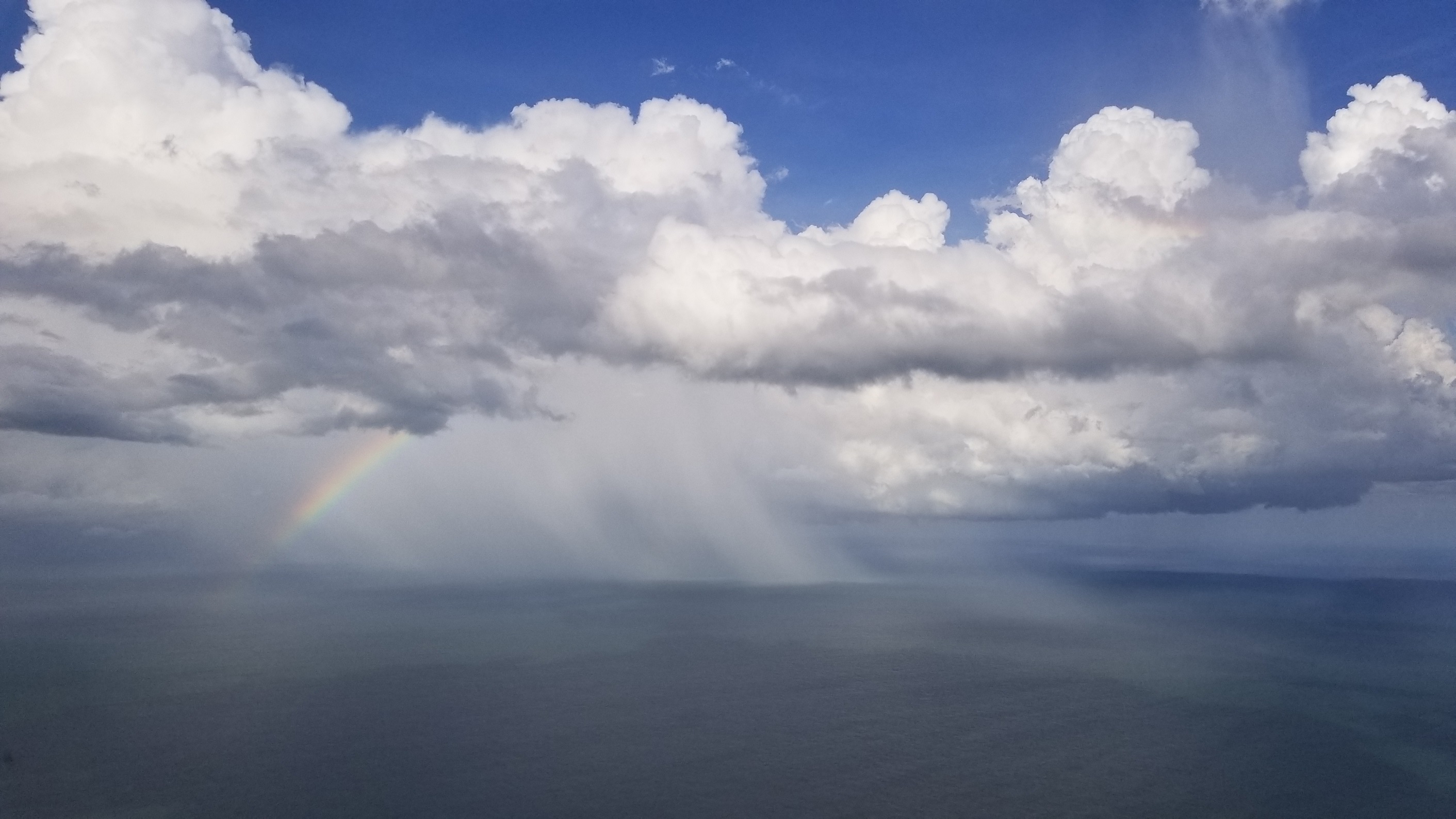 Ocean Rainbowpilotdave (29)in #weather • 7 years ago (edited)Flying by some storms. A rainbow shows its colors. #aviation #rainbow #clouds #ocean