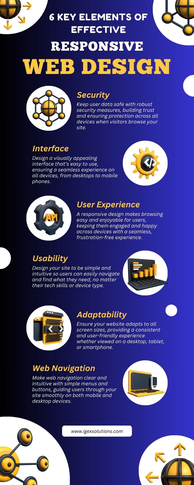 6 Key Elements of Effective Responsive Web Design highlights the essential aspects of creating a website that adapts to any device. From security and interface design to user experience, usability, adaptability, and web navigation, this guide covers the must-haves for building a user-friendly, secure, and responsive site.
