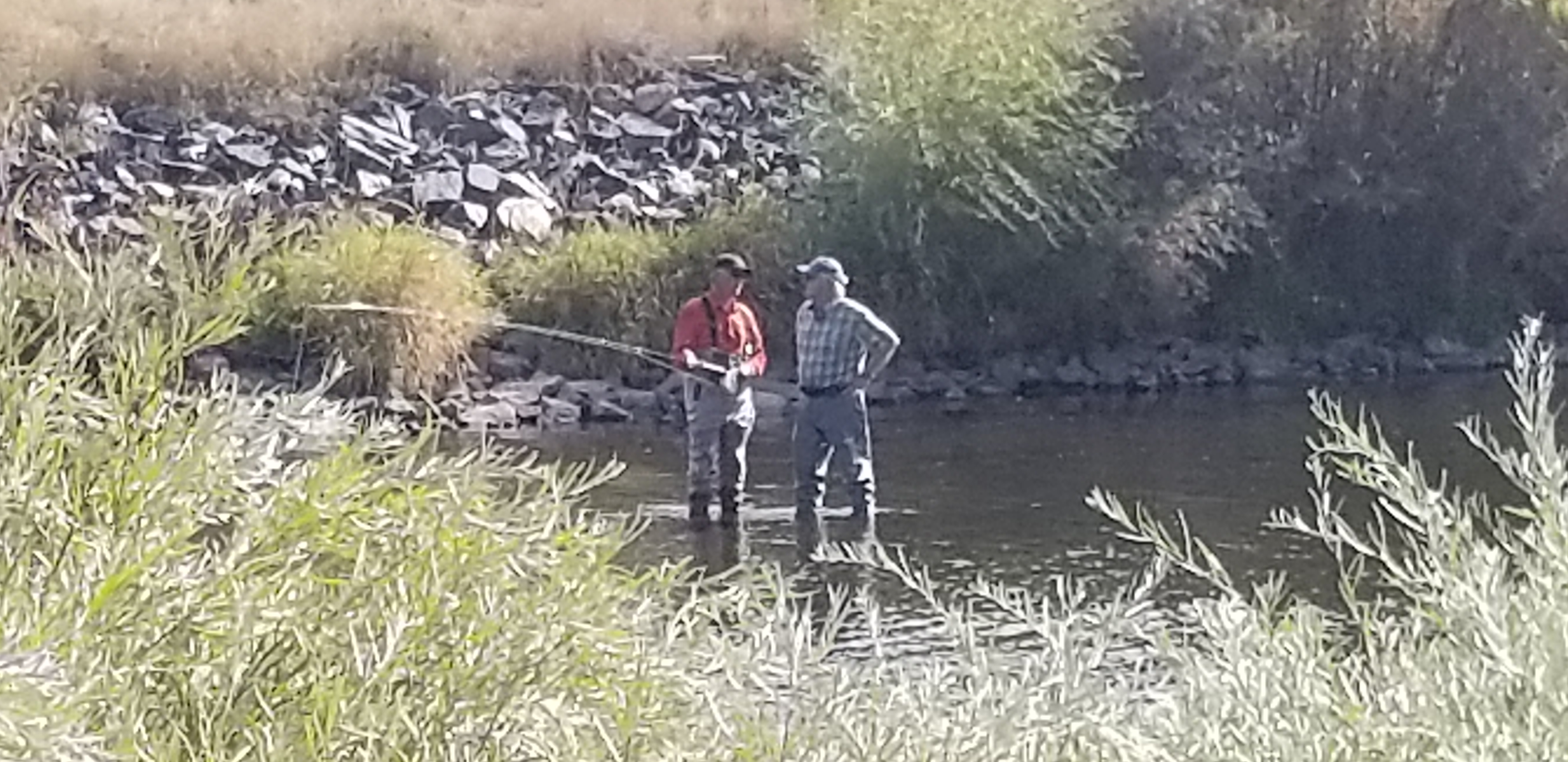 There's a couple old geezers out fly fishing.. let's get a closer look..