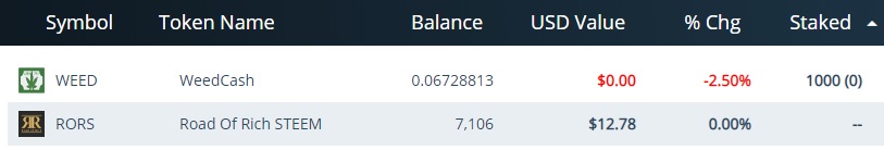 weed 태그는 kr 스티미언분들에게 거의 완전히 외면 당하고 있어 혼자서 외치고 있는 것 같아 답답하네요. 계속 스파만 올리는 것도 아닌 것 같아요. 조금씩 모인 걸 팔아서 뭔가 핫 할것 같아서 rors 코인을 모우고 있네요
