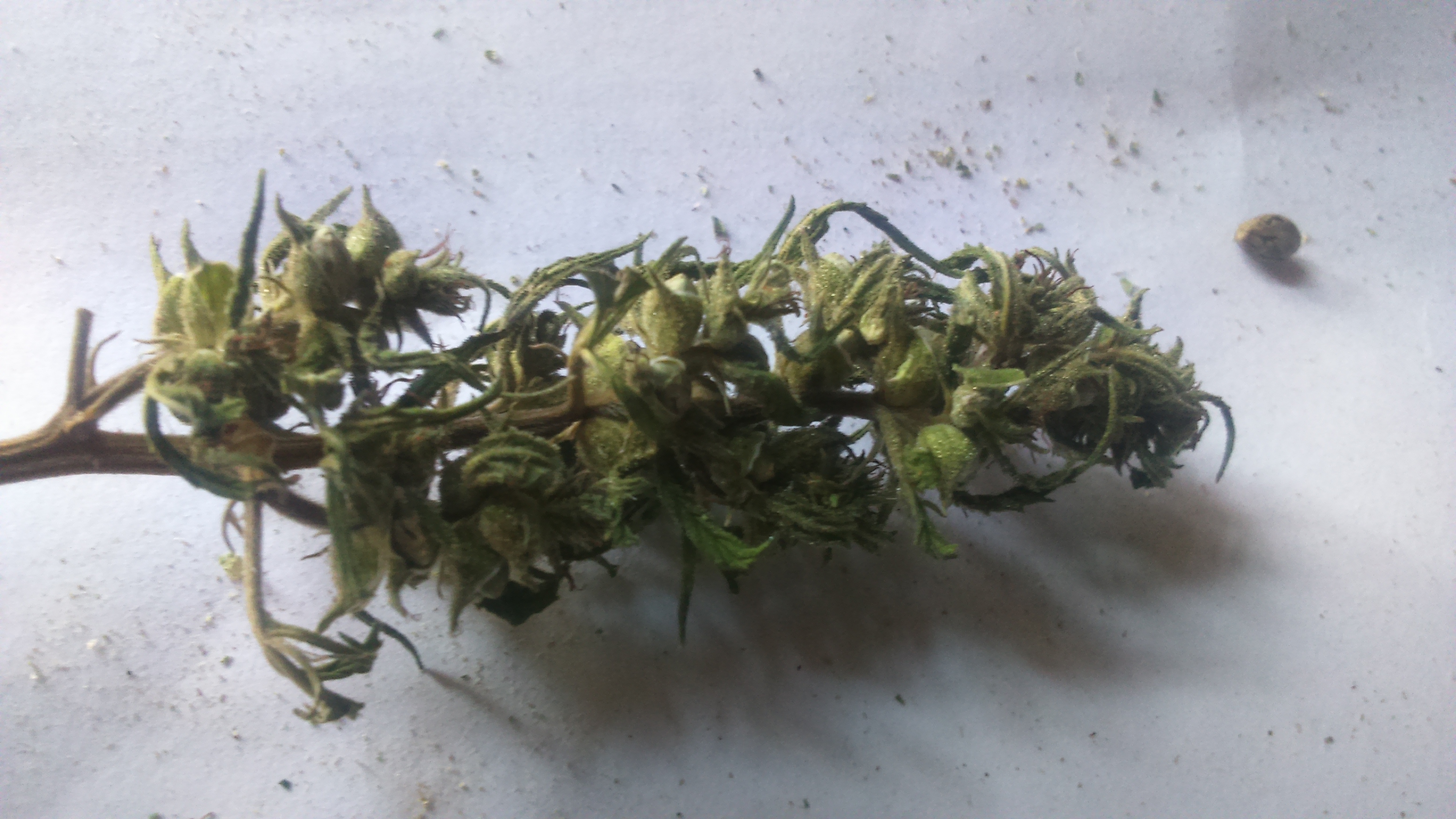 Hello! A couple of days ago, I tore off the bud of my plant. It was very sticky and smelled strong. Today I pulled the bud from the dryer, it was dry and ready for smoking. All snow remained on dry leaves. So today I have a fun day. And most importantly when drying ripe seeds, they can be seen in the photo