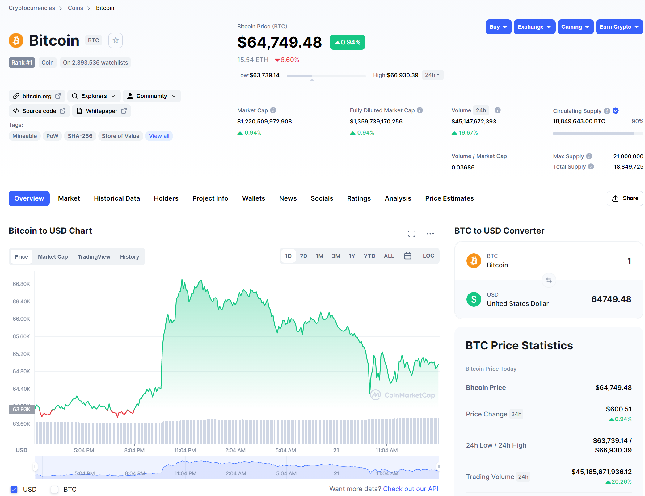 btc今天最高升到了6.69万美金steemCreated with Sketch.chenhs (55)in #wherein • 5 years ago 自2021年4月份btc达到了高点后就一路波折,7月中旬最低跌到了2.9万美金,半年后的10月21日最高涨到了6.69万美金,纪念一下。有人预测今年年底会涨到9.8万美金,不知预言是否会成真,期待。 #cn #crypto