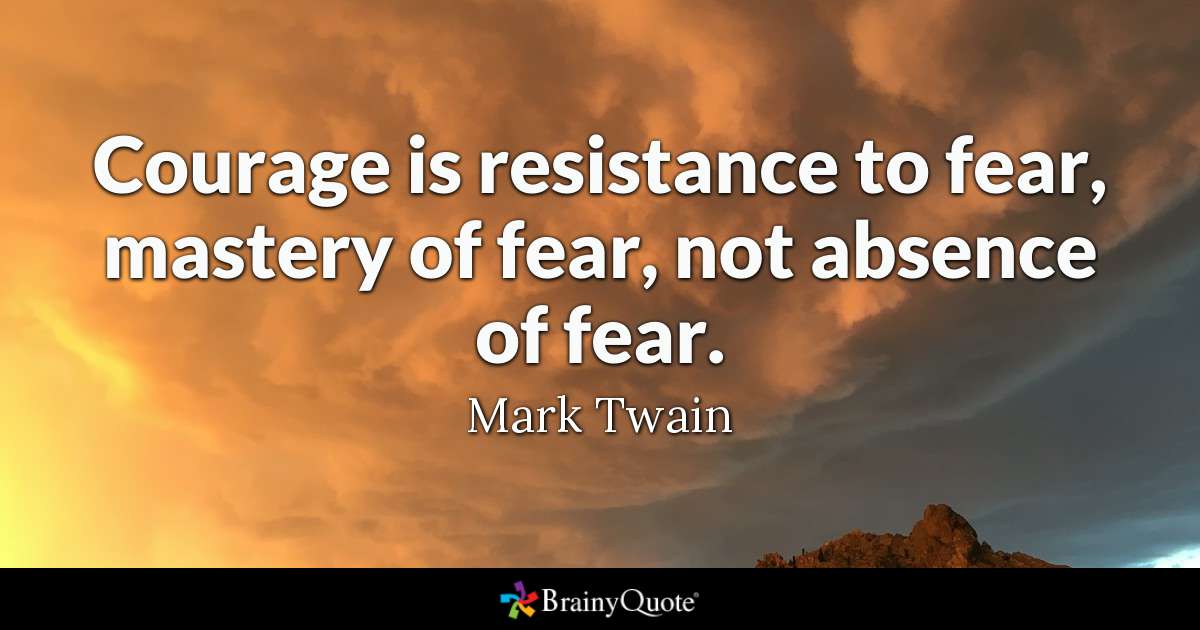 “Courage is resistance to fear, mastery of fear, not absense of fear (Mark Twain).”
