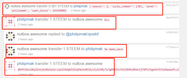 傳送後,您會在 Steem 錢包裡收到一條訊息,代表買入了甚麼號碼的彩票。