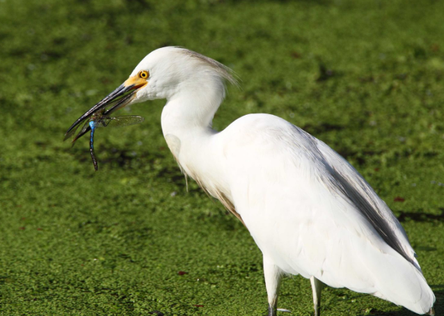 Perhaps because they’re common and familiar, no one I know gets excited to see an egret. These white wading birds are easy to find in ditches, fields, pond edges, marshes, and wetlands where they can’t help but stand out against all that green and brown. We have numerous species of egret here in Texas but even the largest- the Great Egret- which stands at a respectable 3 feet, doesn’t really seem to generate a lot of interest or appreciation. They’re not like ducks, which can be hunted and so are automatically more interesting, and they don’t really have the same appeal as the shorebirds.
