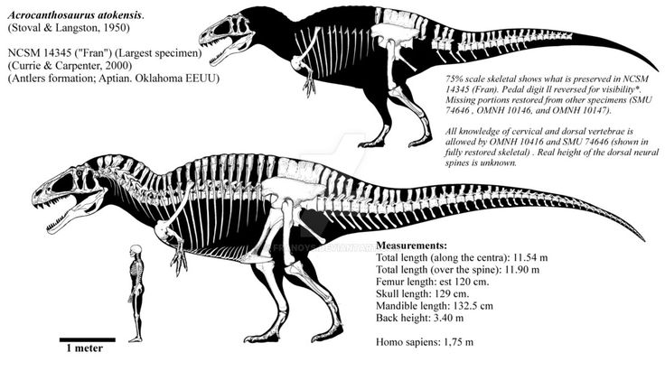 Acrocanthosaurus was up to 40 feet (12 meters) long, and weighed approximately 2.4 tons.
