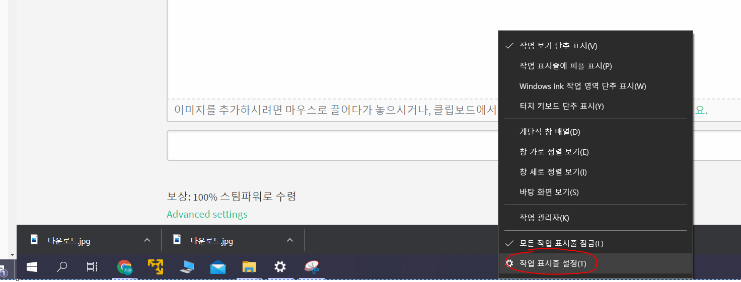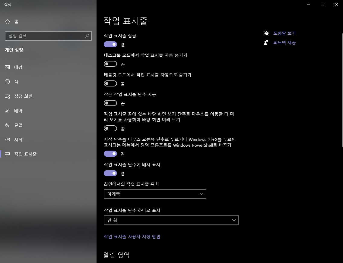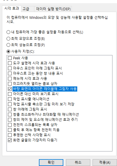 아래와 같이 체크된 것을 풀어줍니다. (사용자 지정 클릭)