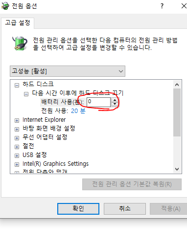 #####고급 전원 관리 옵션 설정
