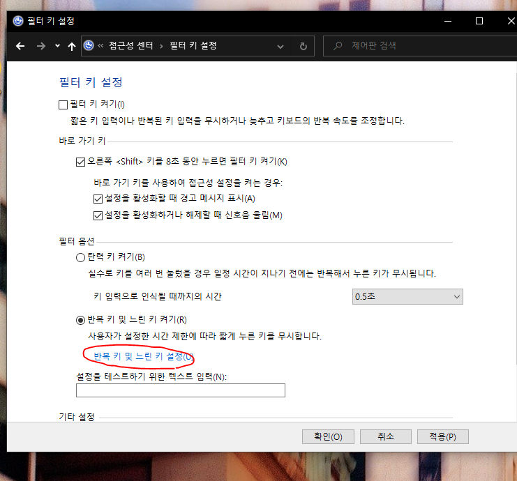 반복 키 및 느린 키 설정을 눌러줍니다.