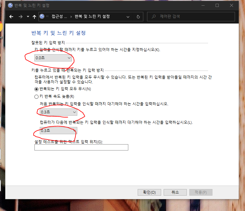 #####키보드 재입력 시간 단축 설정 ( 많은 속도 향상을 가져올 수 있어요.)
