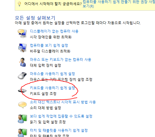 키보드를 사용하기 쉽게 설정 클릭