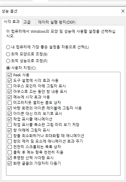 어제는 메모리 누수를 관리하는 게시물을 올렸는데, 여기서 더 빠른 느낌을 느끼고 싶으시다면 제 설정을 따라해 주세요. pc방 주인들은 보통 컴퓨터를 사면 이렇게 세팅합니다.