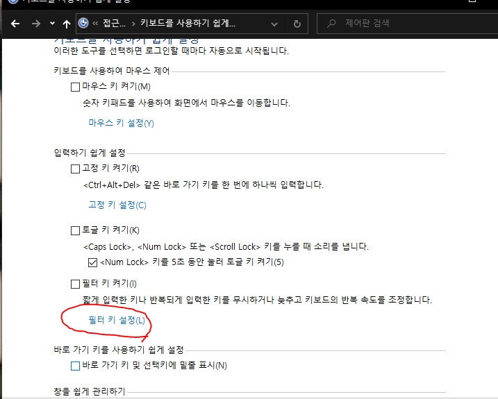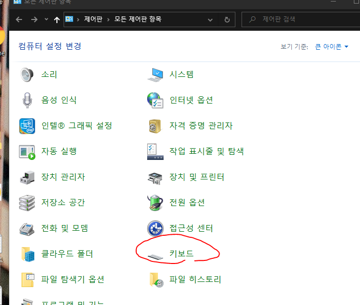 제어판 => 키보드