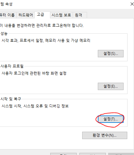 그 다음은 시작 및 복구 =>설정에 들어가줍니다.